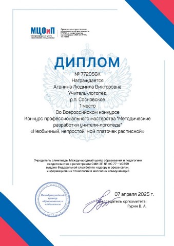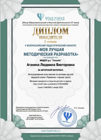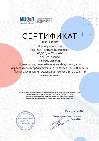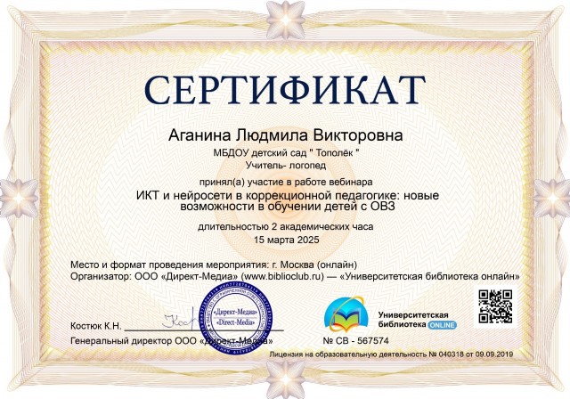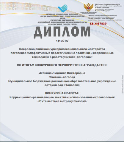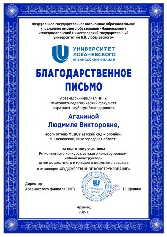 Аганиной Людмилы Викторовны